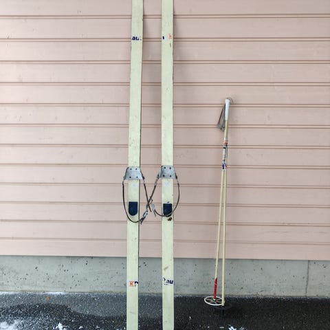 Käytetyt, kuluneet ruotsin armeijan sukset ja sauvat. Sukset 210cm, sauvat 140cm. Toinen suksi vääntynyt, näkyy kuvassa. Kannassa 5cm lahoa näkyy kuvassa.
