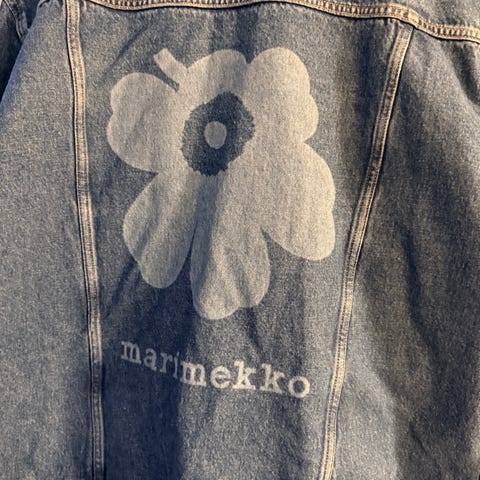 Marimekko murros farkkutakki.Käytetty vain kerran joten on kuin uusi.Lähetys onnistuu.