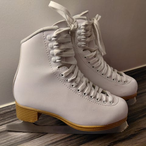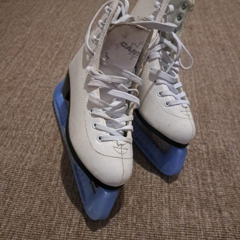 Cantop lasten taitoluistimet, koko 34. Väri valkoinen. Perinteinen nauhakiinnitys ja teräksiset luistinterät. Soveltuvat lasten luisteluun ja muuhun harrasteluisteluun.