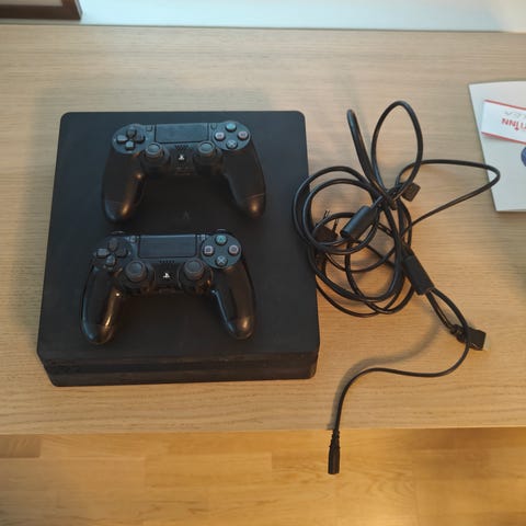 Playstation 4 kahdella ohjaimella, hyvin toimii. Konsoliin vaihdettu lämpötahna ja lämpötyynyt samalla myös puhdistettu. Johdot kuuluu myös kauppaan.