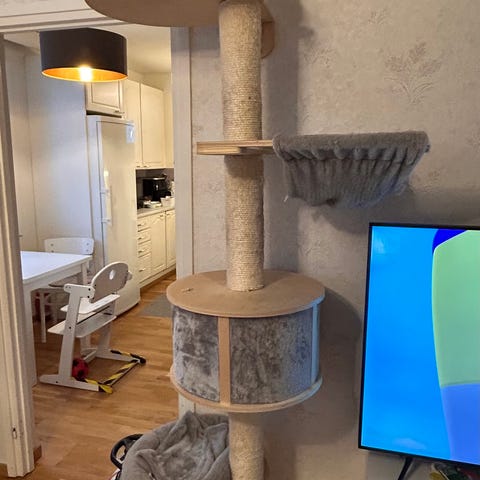 Hyväkuntoiben raapimapuu, ollut pentuaikaan käytössä.
