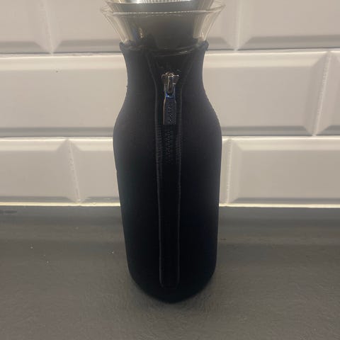 Glögi-karahvi jossa punainen neopreenisuojus.