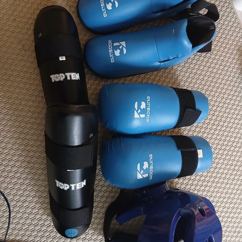 Säärisuojat, elastinen ja sukkamallinen sääri + jalkapöytää suojaava, kamppailulajeihin Koko M.
