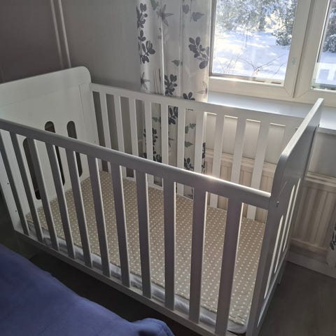Sänky, jonka saa kahteen tasoon. Patja puhdas ja päällinen pesty pikkuväen pesuaineella. Reunapehmuste siisti myös . Nouto savonkatu , iisalmi