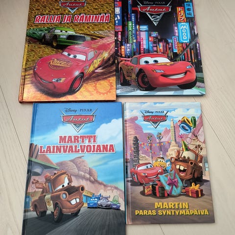 Myydään settinä tai erikseen Disney Autot kirjoja. Kirjoja on luettu paljon ja lukemisen jälkiä niissä on mutta kaikki sivut ehjiä ja tallessa. Martti kirjassa sivuja jouduttu laittamaan teipillä kiinni. Yksittäin 2e/kirja ja settinä 6e kaikki kirjat. Nouto tai postitus.
