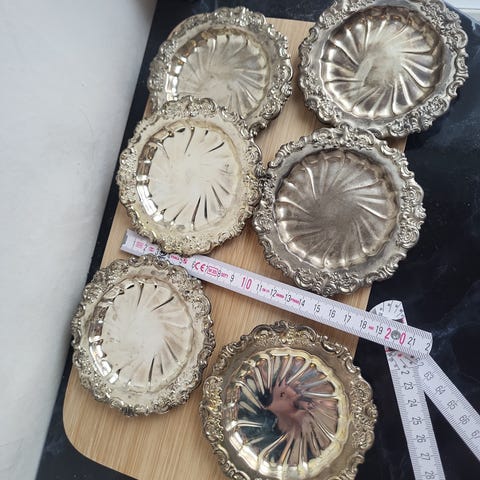 HIENO! Pieni lautanen, hopeanvärinen. Lautasen reunassa on pitsimäinen, läpikuviollinen koriste ja keskiosassa kaiverrettu kuvio. Halkaisija on noin 9–10 cm. Sopii esimerkiksi pienenä tarjoiluastiana, alustana tai koriste-esineenä.