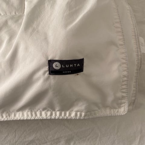 Valkoinen päiväpeitto mustalla reuna kanttauksella