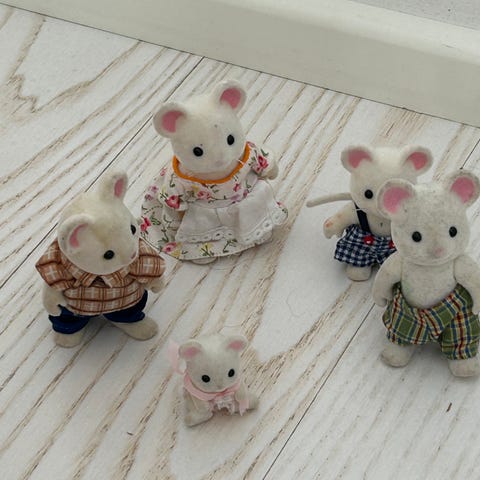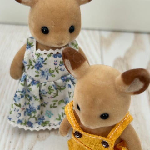 Sylvanian Families nalleperhe hahmosetti. Pakettiin kuuluu viisi nallehahmoa: kaksi aikuista, kaksi lasta ja yksi vauva. Hahmot ovat vaaleanruskeita ja osalla on irrotettavat vaatteet, kuten kukkamekko esiliinalla, keltainen asu sekä vaaleanpunavalkoraidallinen asu.