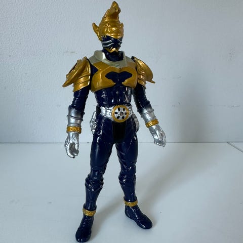 Ultraman-tyylinen hahmo hopea–violetilla värityksellä ja rintagemmalla. Noin 16–18 cm korkea. Sopii hyvin japanilaisen tokusatsu-sarjojen fanille tai 2000-luvun alun Bandai-figuurien keräilijälle.