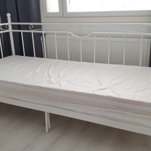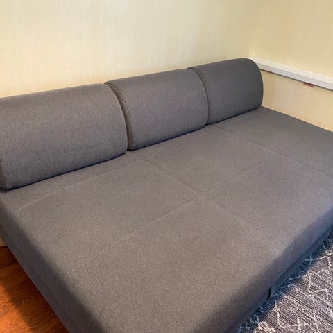 Ikean levitettävä sohvasänky. Käytettävissä joko yhden tai kahden hengen sänkynä tai sohvana. Kulumia on ja niistä löytyy kuva ilmoituksessa. Patjat eivät kuulu kauppaan! Hintaa voi tarjota.