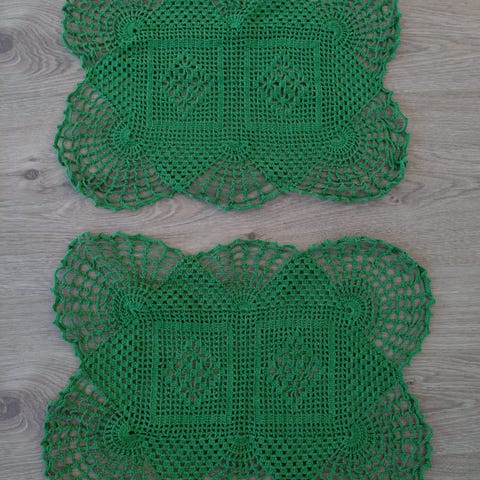 Uudet virkatut pitsiliinat, ananas kuviointi, vaalean punainen, halkaisija 25 cm. Haku H.ki tai Vihti. Toridiili toim.+postikulut ostajalle.
