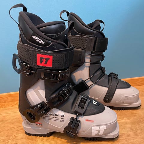 Full Tilt Tom Wallisch Pro Model laskettelumonot. Väri ruskea/keltainen. Kolmiosainen kuorirakenne, useita solkia ja vaijerisäätö. Irrotettava sisäkenkä, jossa merkintä M-S7.5L MP. Soveltuvat rinnelaskuun ja parkkilaskuun.