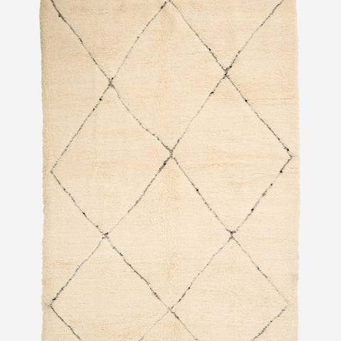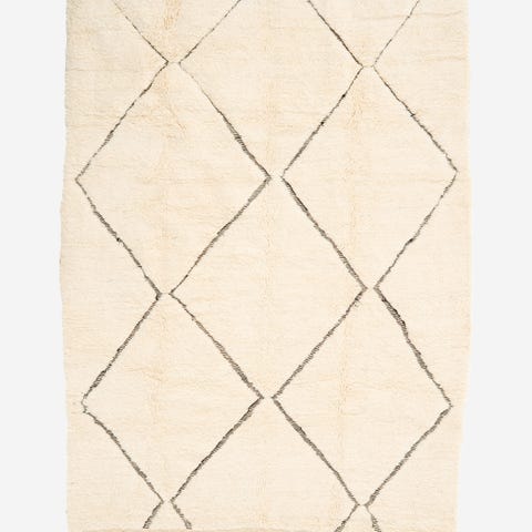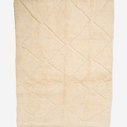 Käsinsolmittu, tyylikäs ja ajaton marokkolainen Beni Ouarain valkoinen matto. Valmistettu korkealaatuisesta lampaanvillasta, joka tuo pehmeyttä ja lämpöä tilaan. Linjakas design ja luonnonläheiset sävyt tekevät matosta monikäyttöisen ja helposti yhdisteltävän eri sisustustyyleihin.