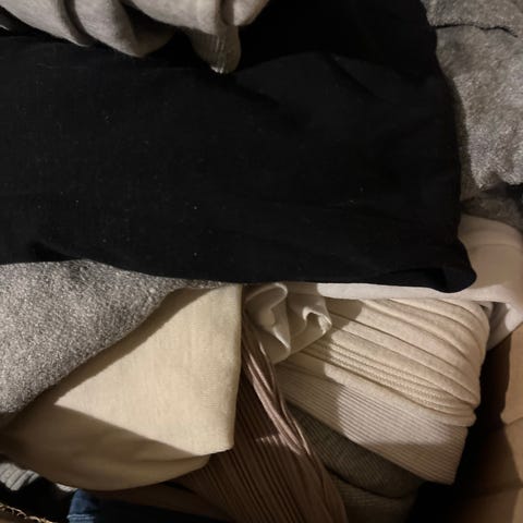 Myyn naisten vaatteita, laukun ja kenkiä. Hintalaput näkyvät kuvissa. 10-50 euroa.