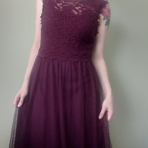Pari kertaa käytetty erittäin hyväkuntoinen ja tahraton mekko. Laskeutuu kauniisti. Koko 34/x/6, mutta on mielestäni sopiva s-kokoiselle. Säätövaraa olisi jäänyt runsaasti. Kuvassa käyttäjällä kuvaushetkellä vy 68 cm ja ry 80 cm ja pituutta 158,5 cm. Sovitusmahdollisuus.