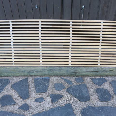 Lattialankusta itsetehty tukeva sängynpääty. Käsitelty harmaalla satu saunavahalla. Yksityiskohdat rautaa.