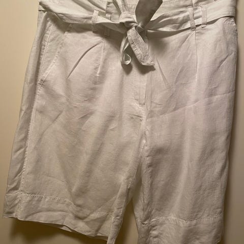 Gerry Weber -naisten shortsit, koko M - 40 Väri musta. Materiaali pellavaa. Shortseissa on vyötäröllä vyölenkit ja irrotettava solmittava vyö, edessä vetoketju- ja nappikiinnitys sekä laskokset. Takana on taskuyksityiskohdat. Sopivat arki- ja vapaa-ajan käyttöön lämpimiin säihin.Nouyo tai postitus ärräpussina