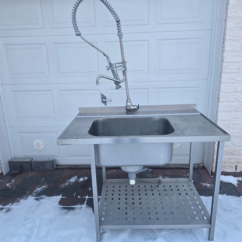 Ruostumaton teräs työtaso altaalla ja alahyllyllä