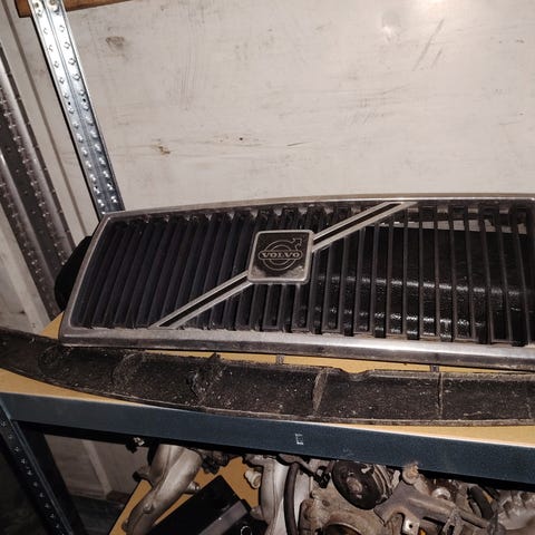 Alkuperäinen tehtaalta mattamusta Volvo 240 voimakeulan maski. Kiinnikkeet ehjät.