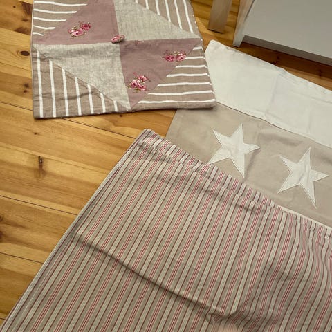 Kotikulta tyynyliinat koristetyynyille, 40x40cm, 2 kpl. Kaupan päälle saat pääsiäistipu. Hinta 3 euroa/pari. Nouto Reijolasta tai pk ostajalle.
