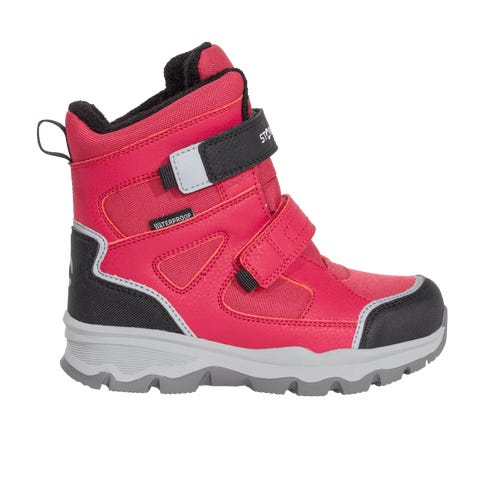 Vedenpitävät ja lämpimät talvikengät, joissa tarranauha, jotka pitävät jalat kuivina ja lämpiminä viileinä päivinä. Tukevat ja mukavat. Heijastavat yksityiskohdat. Ulkopohja takaa hyvän pidon alustalla.Stormberg Sogndal Warm Winterboot WP K -kengät ovat vedenpitävät ja mukavat talvikengät, joissa on sisäpuolella 40 % villavuori ja 3M Thinsulate, jotka pitävät pikkulapsen jalat kuivina ja lämpiminä viileinä päivinä.Talvikengät ovat eristävät ja pehmeät ja tarjoavat hyvän suojan kylmältä ja märältä. Nilkan ympärillä oleva muotoilu tarjoaa erinomaisen tuen ja mukavuuden koko päiväksi, mikä tekee kengistä täydelliset sekä leikkiin että vapaa-aikaan.Ulkopohjan kuviointi antaa hyvän otteen pinnasta ja vähentää liukastumisriskiä, jolloin lapset voivat leikkiä turvallisesti ja huoletta.Heijastavat yksityiskohdat parantavat näkyvyyttä pimeässä. Kärkivahvikkeen ansiosta talvikenkien kulutuskestävyys on parempi ja käyttöikä pidempi.Talvikengissä on tarranauha, jonka avulla kenkä on helppo mukauttaa optimaaliseen istuvuuteen.Yksityiskohdat:- Heijastavat yksityiskohdat- Kärkivahvistus- Tarranauha