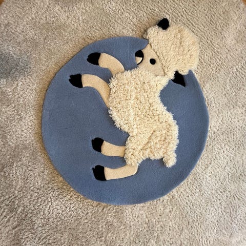 Värikäs kuplavolkkarimatto tekee lastenhuoneesta ainutlaatuisen. Villamaton mitat ovat 126 cm x 50 cm.