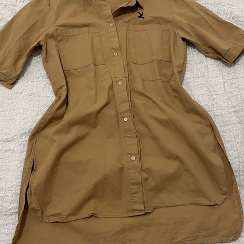 Liukkaan tuntuinen, lyhyen mallinen nappipaita. Edessä tasku. Hieman läpikuultavaa kangasta. Koko XL, 100% viskoosia.
