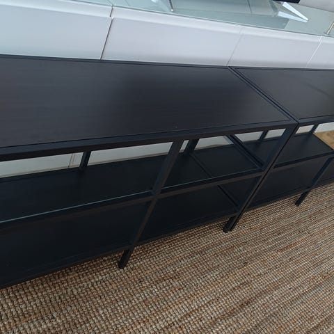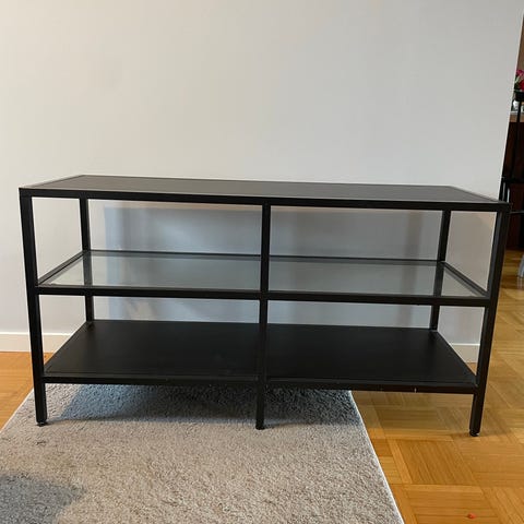 Myydään Ikean SKRUVBY sarjan tv-taso (tätä kokoa ei enää myynnissä) sekä sivupöydät.