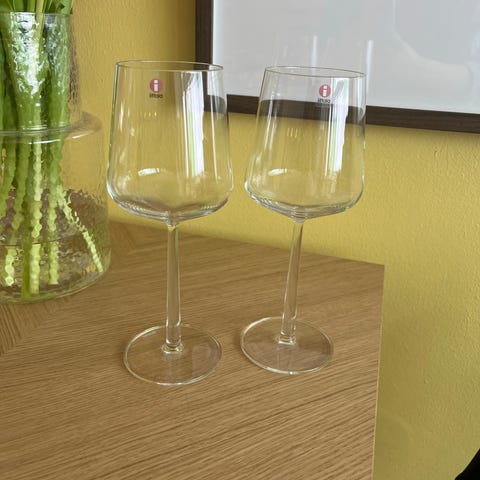 Iittala Essence valkoviinilasit 2kpl yhteensä 20€. Erinomaisessa kunnossa. Toisessa lasissa liimamerkit tarran irroittamisesta, ei ole koitettu irroittaa (viimeinen kuva).