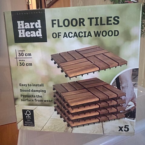 Kolme paketillista kyseistä lattialaattaa.