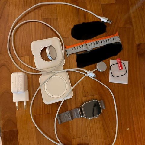 Apple Watch Ultra 2 black titanium 49mm, GPS/ Cellular, mustalla metallirannekkeella. Mukana tulee 7 ranneketta, käyttämätön uusi musta ocean, harmaa milanese, toinen musta metalli, harmaa tarvike ocean, 2 ruskeaa magneetti ranneketta ja 4 uutta näytönsuojalasia. Näytönsuojalasi uudesta asti. Vähän käytetty, akun kunto 100%, uutta vastaava. Nouto Turun Kastusta tai postikulut ostajalle.