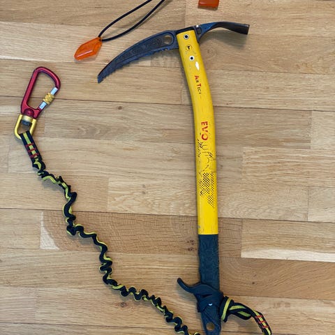 Grivelin monopoint -raudat jääkiipeilyyn. Piikeissä reilusti terästä jäljellä. Jesari estää lumen tarttumisen, eikä pidä rautoja kasassa. 😄