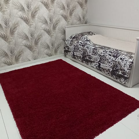 Matto on uudenveroinen. Värinä osin viinipunainen ja kirjavat ruutukuviot.