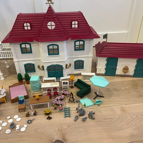 Myydään Schleich kartano 42416 ja pieni talli. Alkuperäinen laatikko ja ohjeet mukana. Hevoset ja vain muutamia pikkutavaroita puuttuu. Kaikki rakennusten osat kunnossa ja tallessa. Pienet osat nähtävissä viimeisissä kuvissa.