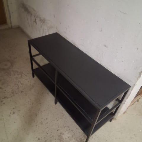 Lasinen tv-taso, jossa on kolme mustaa lasihyllyä ja metalliset jalat. Ylätaso soveltuu television sijoittamiseen ja kaksi alempaa hyllyä esimerkiksi mediatoistimille, pelikonsolille tai muille laitteille. Avoin rakenne helpottaa johtojen järjestelyä ja ilmanvaihtoa laitteille. Väri on musta ja metalli on krominsävyinen. Sopii olohuoneen tai tv-huoneen säilytys- ja tv-kalusteeksi. Mittojen hahmottamiseksi, kuvan tv on 65 tuumainen.