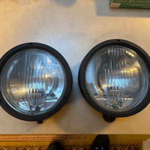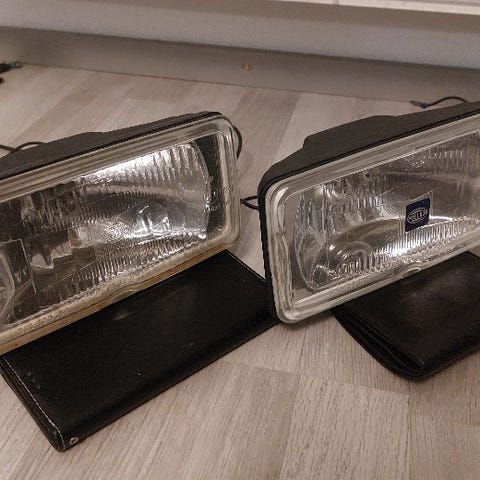 Toimivat Hella lisävalot muutaman kerran ajetuilla polttimoilla. Valoissa kiinni pätkät liitosjohtoa.