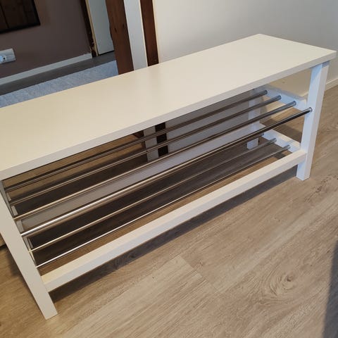 Jysk penkki, jossa pehmustettu istuinosa ja alataso säilytykseen. Penkissä on musta verhoiltu istuin ja musta runko. Alahylly soveltuu esimerkiksi kenkien tai korien säilyttämiseen. Penkki sopii eteiseen, makuuhuoneeseen tai muuhun oleskelutilaan istuimeksi ja säilytysratkaisuksi. Kunto kuin uusi, ovh. 50€