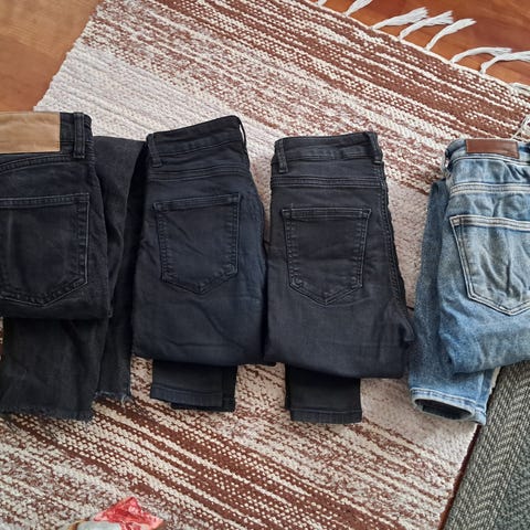 Myyntiin kuudet mustat farkut. Kaikki koossa S. Levikset kokoa 26tuumaa.