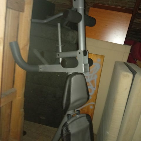 Tunturi treenipenkki selkä- ja istuintyynyillä. Penkissä on pitkä selkänoja ja erillinen istuintyyny, molemmissa musta pinta vihreällä reunuksella ja Tunturi-logo. Rungon osat ovat metallia. Sopii esimerkiksi kotikuntoiluun erilaisiin lihaskunto- ja käsipainoharjoituksiin.