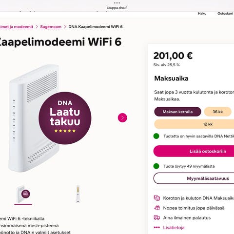 DNA WiFi 6 -modeemi Kaapelikoteihin F-3896