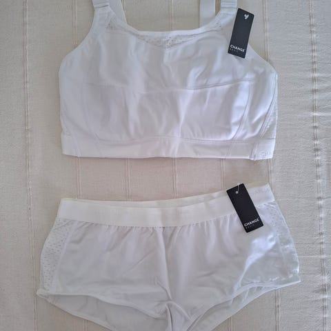 Laadukkaat käyttämättömät Changen sporttialusvaatteet edullisesti! Rintaliiveissä leveät olkaimet ja portaaton säätö tarralla (ei hankaavaa metallia) ja 3 hakasleveyttä takana.