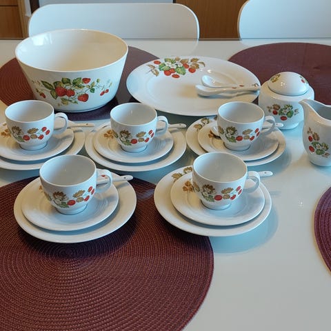 60-70 luvun astiasto + tusina kakkulautasia.