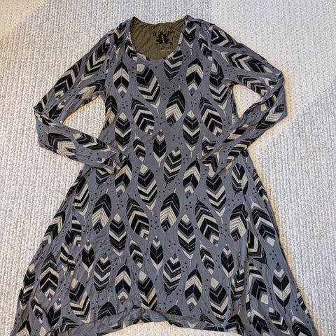 Kevyt, joustava ja mukava materiaali, puuvillamodaali sekoitus, mitat kainalo-kainalo n.44cm, joustaa n.49cm, hihansuu kainalosta n.54cm, niska-helma n.75cm, ehja, puhdas, hyvässä kunnossa. tunika pitkä paita pusero jooga pilates