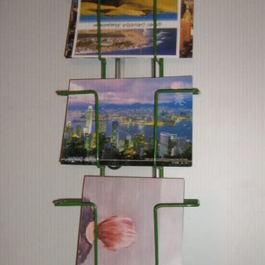 Metallinen seinälle laitettava teline korteille ja valokuville. Mitat 52 cm x 72 cm.