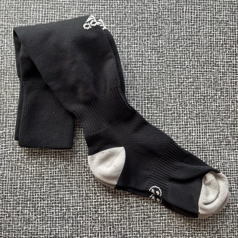 Puma jalkapallosukat, koko 1. Väri musta harmailla vahvistetuilla pohjaosilla. Sukat on suunniteltu jalkapalloon, ja niissä on pitkä varsi sekä joustavat ribbineulokset, jotka auttavat pitämään sukan paikoillaan pelin aikana. Sopivat lapselle, joka käyttää sukkia koko 31/34