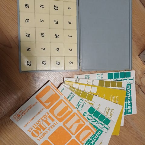 Myydään kuvassa olevat Mini-luko alustat x 2, mini- luko kirja sekä Logico pelialustat x 4 + 4 tehtävä settiä.