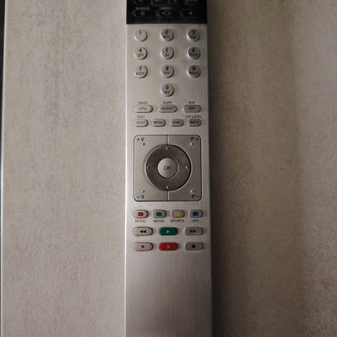 Tästä hieman reilu 3v vanha amblight- kaukosäädin jollekin. Teevee lähti ohjeiden mukaisesti huoltoon mutta ei koskaan palannut vaan tuli vaihtolaite tilalle. Mulle jäi laatikkoon tuo ja jalat.