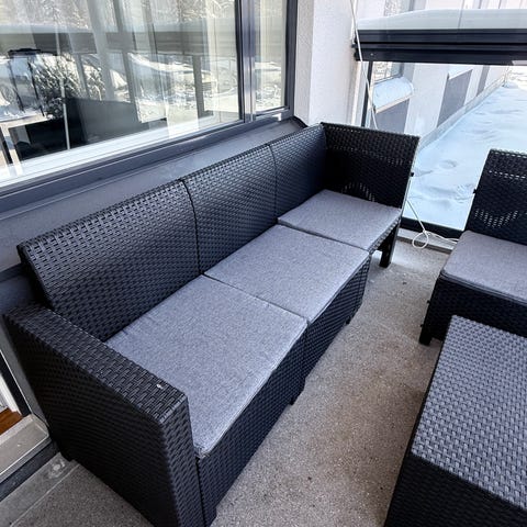 Terassikalusto pöytä ja 6 tuolia musta metalli