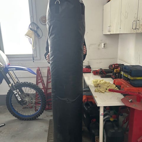 Nahka-Sakke merkkinen laadukas nyrkkeilysäkki. Painoa reilut 40 kg ja pituus 80 cm. Mukaan nyrkkeilyhanskat ja käsisiteet. Kuvan ripustukset mukaan (kattoon ruuvattua koukkua lukuunottamatta).