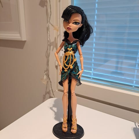 Huom! Nukella on ollut klassinen liima ongelma hiuksissa. Sitä on pyritty korjaamaan, mutta kaipaa todennäköisesti silti hoitoa